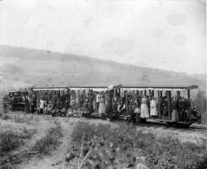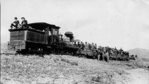 Note the seats formed by planks in ore cars. H H Buckwalter, Abbott Collection