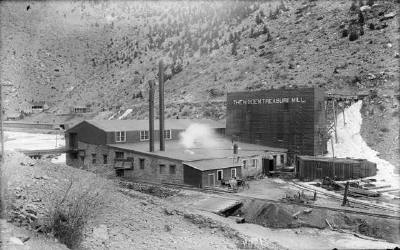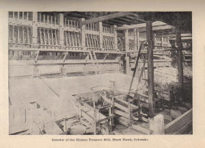 These mills were west of Black Hawk on Clear Creek, west of Chase Gulch and east of the Gilpin Engine House. The mill used amalgamation and concentration processes. It had 40-85 stamps, 2 outside amalgamation plates, 2 Wilfley tables. It's capacity was 115 tons. You can find a shipping summary form the San Juan Mine to the Hidden Treasure Mill for September 1890 in Documents. Mile Post 36.73