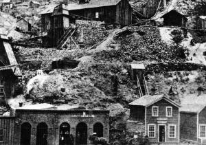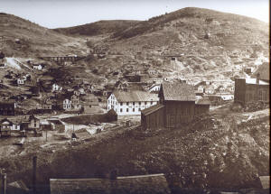 Central City. Why the town was named Mountain City is obvious; the town was built on the side of a mountain so steep that terraces had to be graded for most of its buildings. Mountain City had a log theatre, the first saloon in a Colorado mountain town, and on June 12, 1859, it was the first site of a religious service held in a Colorado mountain mining town. Businesses included the Mountain City Brewery, a jewelry shop and a butcher shop. Along the main road to Central City was a restaurant, the Masonic Temple, a general store, the office of L. W. Borton, Attorney at Law, and a claims and recorder’s office. A saloon, sawmill, boarding house, carpenter shop, blacksmith shop and a second butcher shop rounded out Mountain City’s businesses. By January, 1860, the population of Mountain City was estimated at 800. The demand for housing was tremendous as the number of miners and prospectors grew daily, but there was little space available for the construction of homes in Mountain City. As a result, other towns, such as Black Hawk, Central City, Nevadaville, etc. sprang up and eclipsed Mountain City. In 1880, Mountain City was annexed into Central City, and its last listing for businesses in the Colorado State Business Directory was 1878. Click on an image for a larger version.