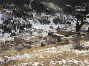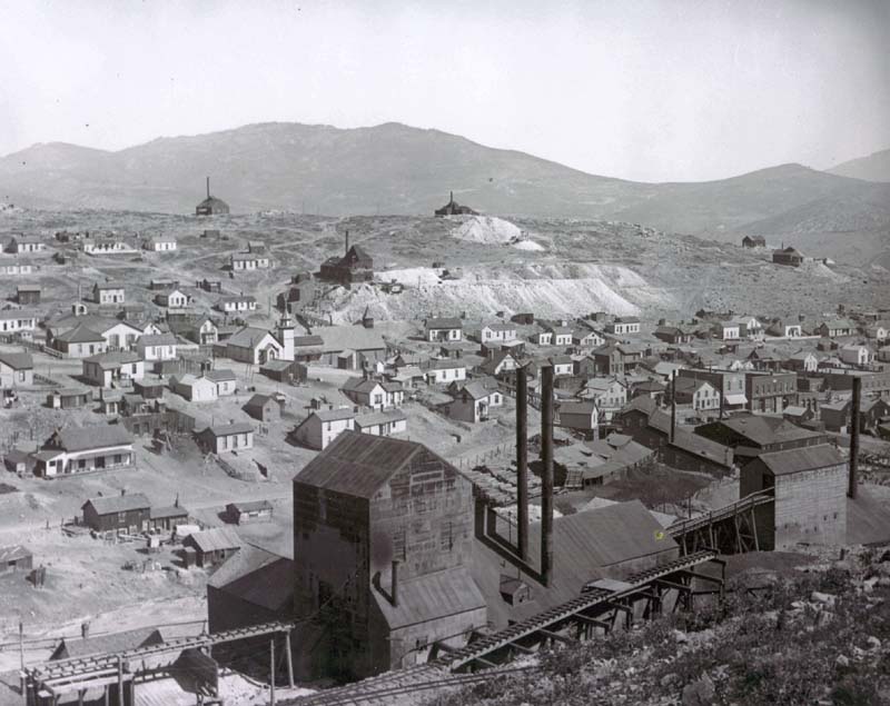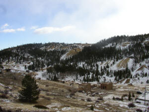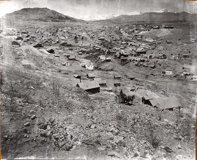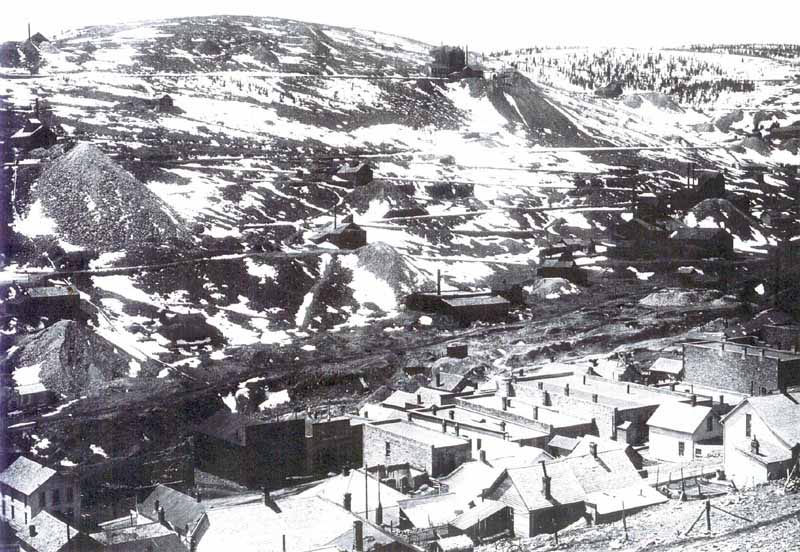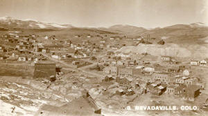 Gilpin County. Joseph Stadley, named the town. It was also known as Nevada or Nevada City. When Colorado territory was created in 1861, the post office elected to use the name Nevada. However, the name created confusion with mail going to Nevada, CA. In 1869, the post office changed the name to Bald Mountain, but residents resisted and continued calling their home Nevadaville. Postal officials would not yield, and neither would its residents. The post office continued as Bald Mountain until its closure in 1921. This created an unusual situation where the name of the town was different than the name of its post office. Nevadaville was a very large Colorado town by 1860 standards with a population of 2,705, making it slightly larger than Denver. In 1864, the town opened a school with an initial enrollment of one hundred students. Nevadaville wanted no part of the wild night life common to other mining towns, and in a meeting held in 1860, resolved that, “…there be no Bawdy Houses, Grog shops or Gambling Saloons within the Limits of this District.” The fine was $50 in a time when wages ranged from $1.50 to $2 for a day’s work. If the violations continued, banishment from the district was the next step. The district also appointed its own sheriff to enforce the law, and as an added incentive, the sheriff got to keep half of the fines. Nevadaville had a substantial business district including a number of saloons, two barber shops, a shoe store, and a grocery store. A dry goods store opened as the Colorado Trading and Investment Company. The largest structure in town was the Red Men’s Building, which housed the town butcher shop. Nevadaville did not have a bank, and merchants accepted currency as well as gold dust for payment. A much needed medical practice was opened up by Dr. Bourke in 1890. He also operated a drug store, which was a common sideline for physicians. Nevadaville had its own baseball team, and the Cornish introduced the game of cricket. A club was formed, called the Mountain Daisy Cricket Club. Nevadaville’s biggest problem was a good water supply, and this was what ultimately limited the town’s success. Despite improvements in the water supply, it was still inadequate and could not prevent the town from burning to the ground no less than five times during its history. The last fire was in 1914, and the town was never fully rebuilt. Below are historic pictures culled from various sources of the railroads, mines and mills around Russell Gulch. Click on an image for a larger